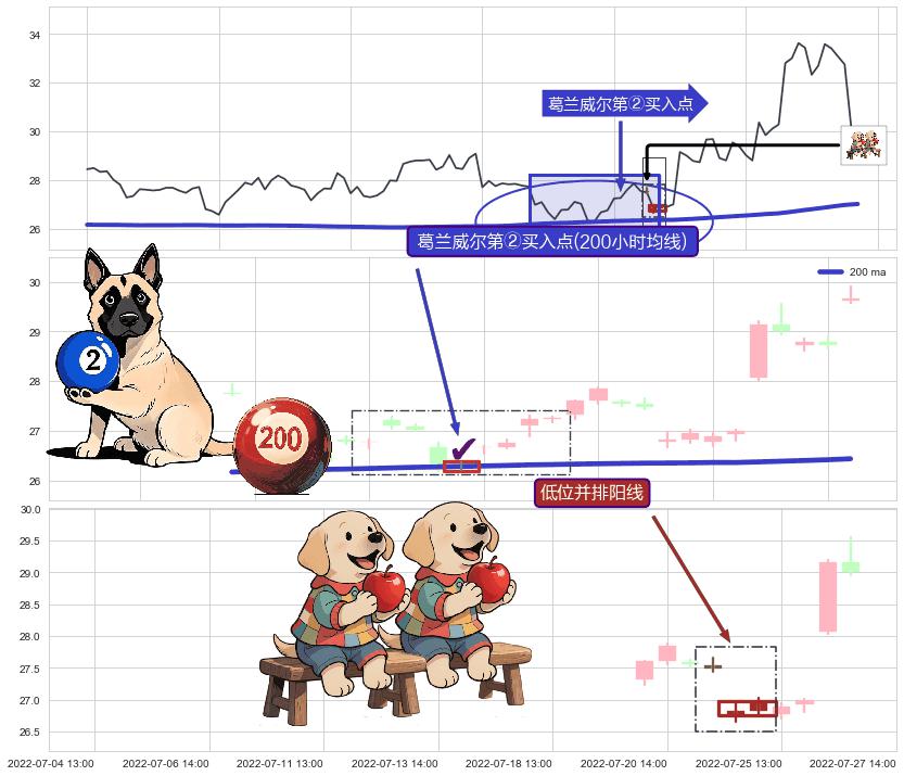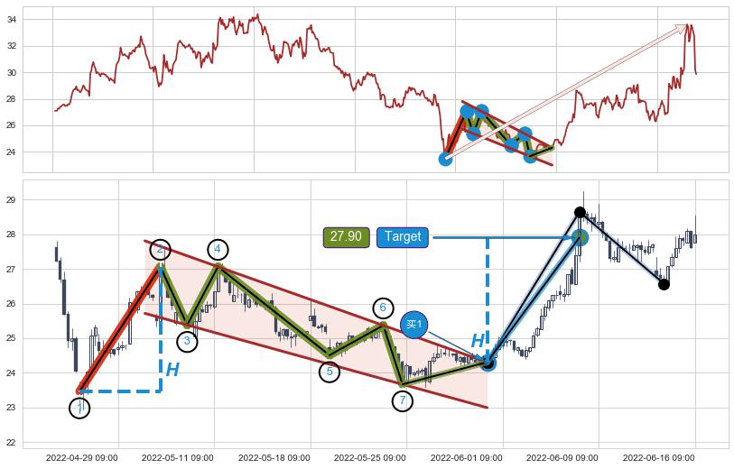 ➢ 收盘价(06-22:14: 27.29 )→再次回踩→第一根k线高点(06-17:14: 27.70 )