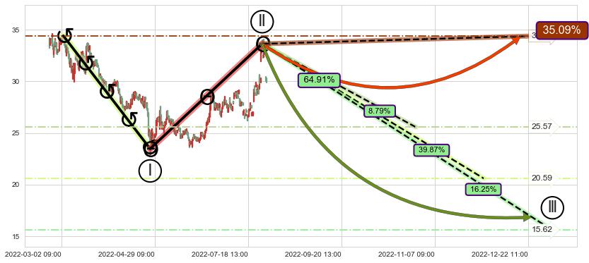 ➣ 大趋势循环浪继续向下概率64.91%