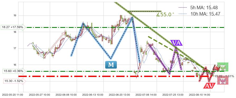 ♘ 阻力价格位15.60,可信任强度60.92%,距离最后交易2022-08-12 14:00形成的收盘价格15.54相差 +0.36%