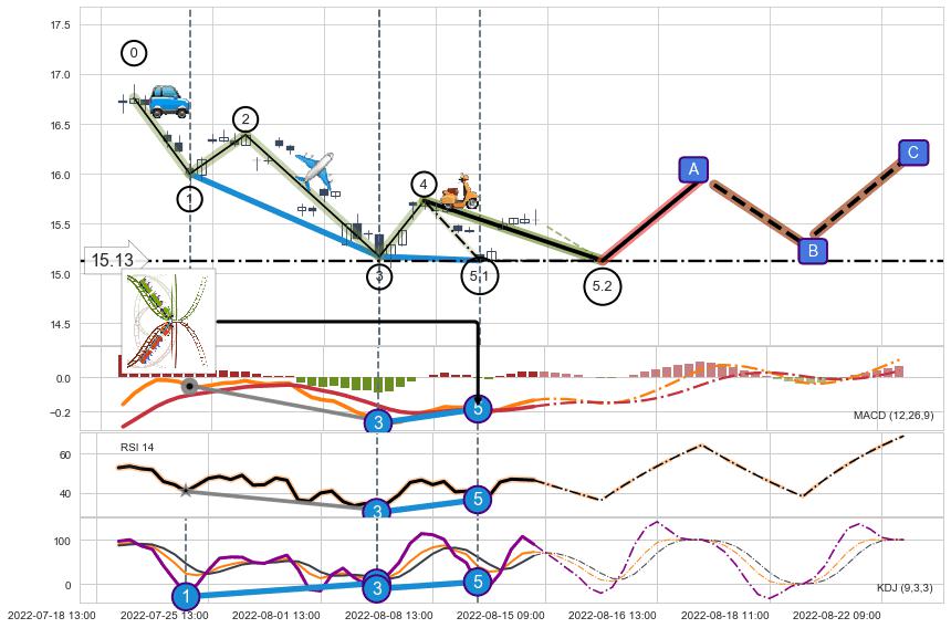 ➢ 5.2: 预测第5浪最终位置(08-15:14, 15.13)