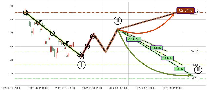 ➣ 循环浪继续向下【平均值】位置(09-01:11, 14.82),匹配聚类样本比例49.30%, 可能性概率18.46%