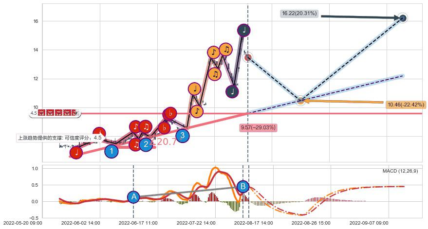 ➣ 预测:2022-09-09 09:00,【继续上扬】稳定目前上涨趋势的前提下,预测价格:16.22