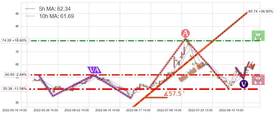 ♘ 支撑价格位60.85,可信任强度70.50%,距离最后交易2022-08-12 14:00形成的收盘价格62.63相差 -2.84%