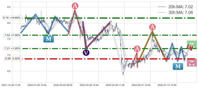 ♞ 20小时均线:7.02,30小时均线:7.06→ 快线<慢线
