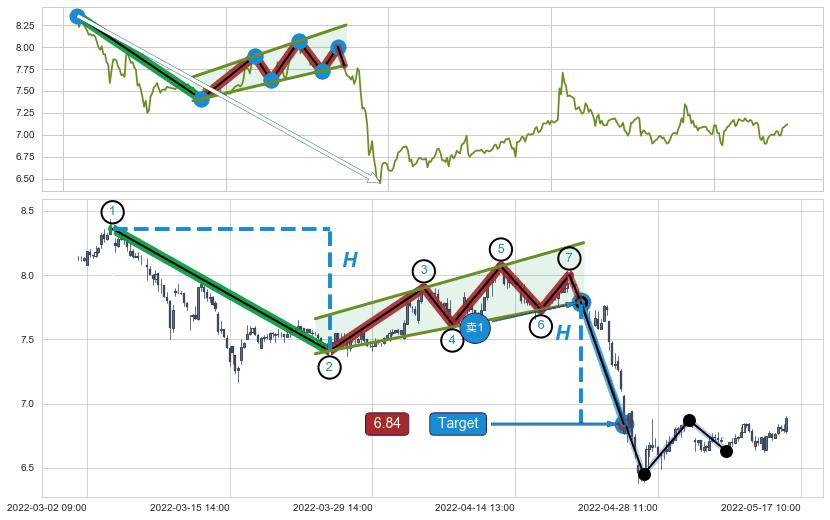 ➣ 最小中继整理跌幅→𝐇: 0.9500 (𝐇旗杆的长度:旗杆起点→顶点)
