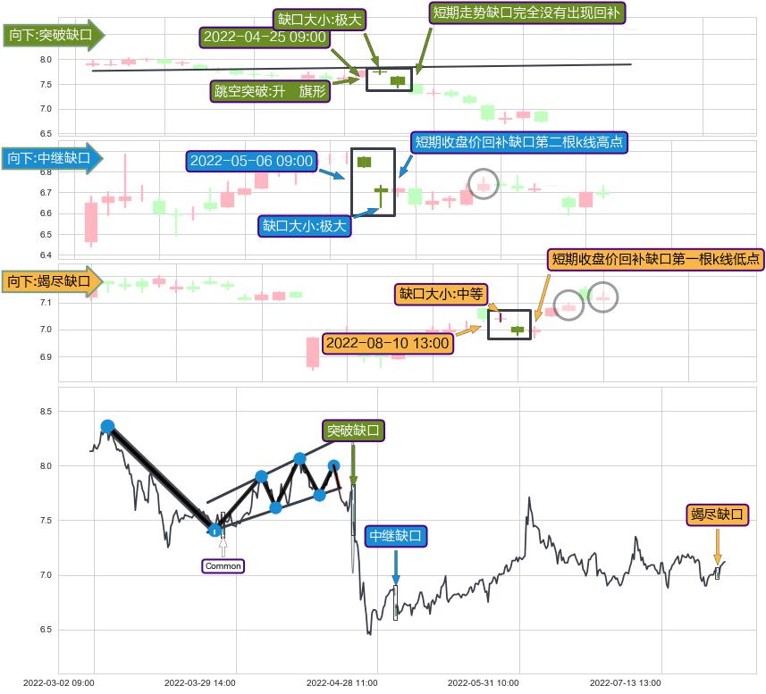 ➢ 2022-08-10 13:00形成:向下跳空【竭尽】缺口