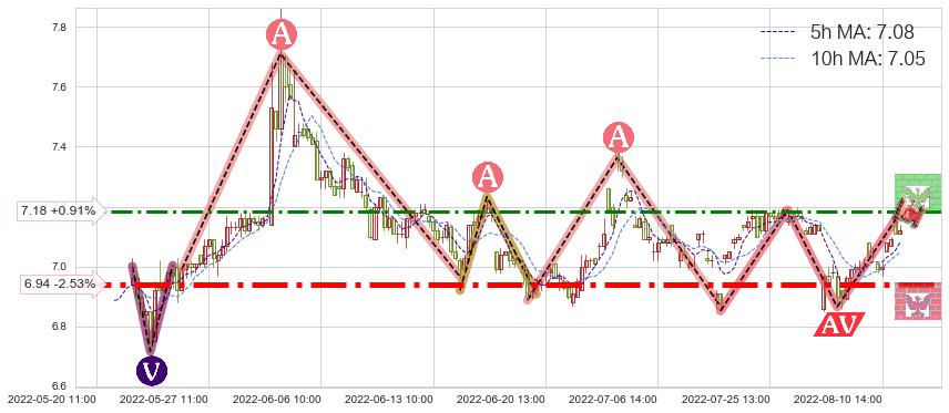 ♞ 5小时均线:7.08,10小时均线:7.05→ 快线>慢线
