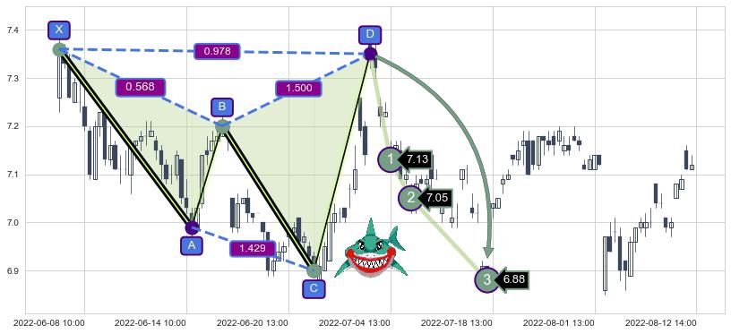 ➣ 已完成【鲨鱼】形态起点X: 06-07:10, 终点D: 06-30:13, 共62交易小时