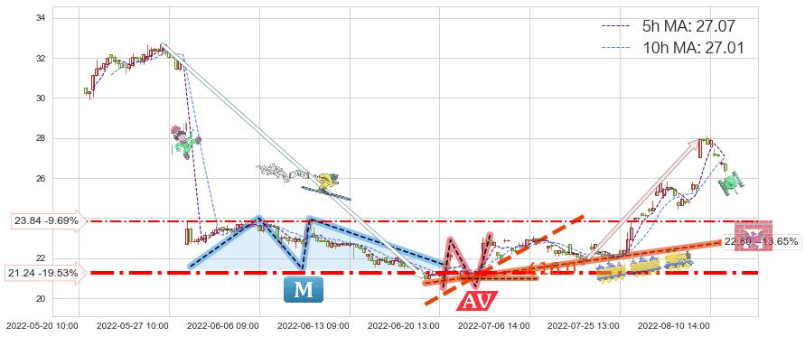 ♘ 支撑价格位21.24,可信任强度74.42%,距离最后交易2022-08-12 14:00形成的收盘价格26.40相差 -19.53%