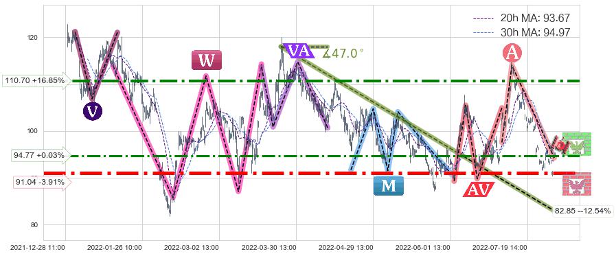 ♞ 20小时均线:93.67,30小时均线:94.97→ 快线<慢线