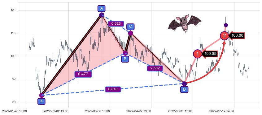 ➣ 已完成【蝙蝠】形态起点X: 02-11:13, 终点D: 05-26:13, 共346交易小时