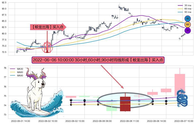 ⚀ 2022-06-06 10:00:00小时显现 30小时-60小时-90小时均线 【蛟龙出海】买入点 看多信号,后市看涨,买入