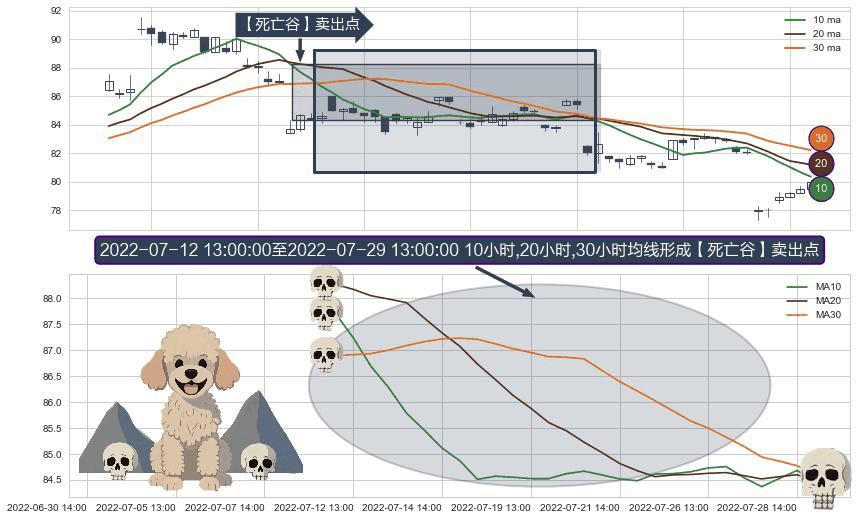 ⚀ 2022-07-12 14:00:00-小时至2022-07-29 13:00:00-小时显现 10小时-20小时-30小时均线 【死亡谷】卖出点 看空信号,后市看跌,卖出