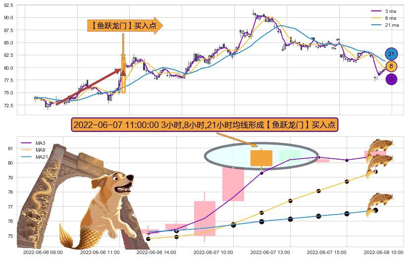 ⚀ 2022-06-07 11:00:00小时显现 3小时-8小时-21小时均线 【鱼跃龙门】买入点 看多信号,后市看涨,买入