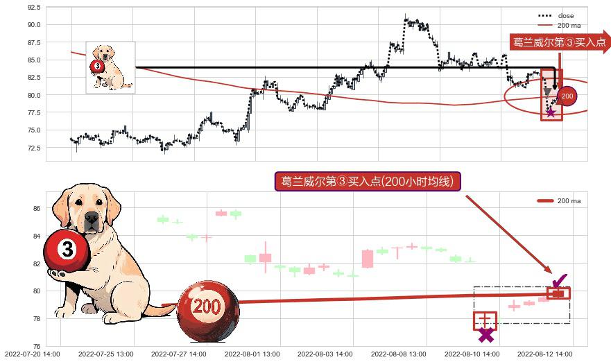 ⚀ 2022-08-12 14:00:00-小时显现 葛兰威尔均线 200小时均线 第③买入点 上升趋势的中继信号,后市看涨,买进信号