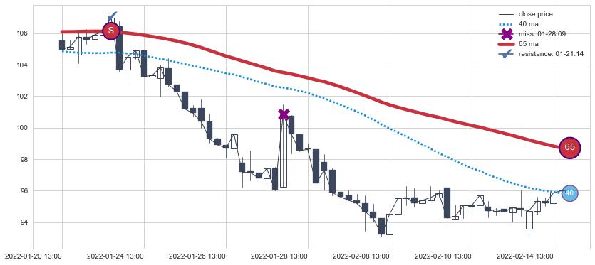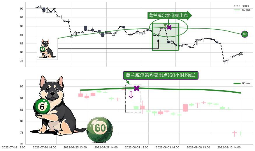 ⚀ 2022-07-28 14:00:00-小时显现 葛兰威尔均线 60小时均线 第⑥卖出点 走势反转见顶信号,后市看跌,卖出信号