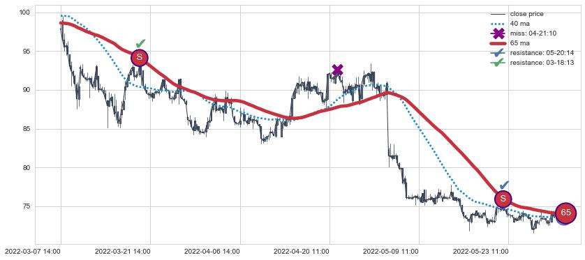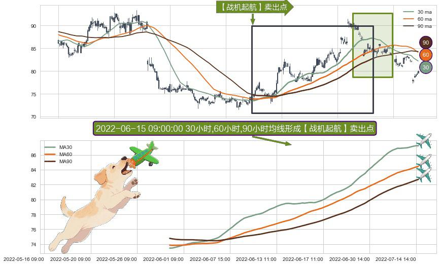 ⚀ 2022-05-30 14:00:00小时-2022-07-15 13:00:00小时显现 30小时-60小时-90小时均线 【战机起航】卖出点 看空信号,后市看跌,卖出