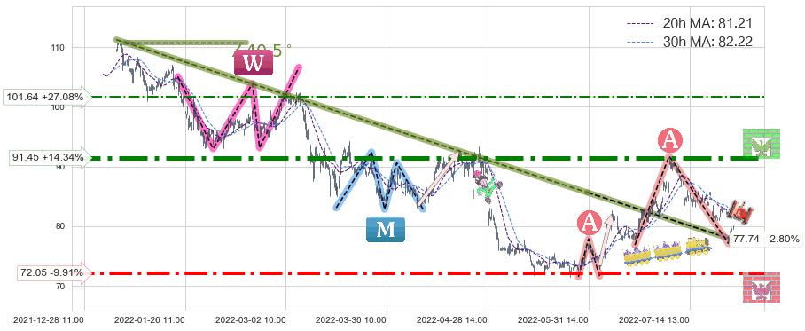♞ 20小时均线:81.21,30小时均线:82.22→ 快线<慢线