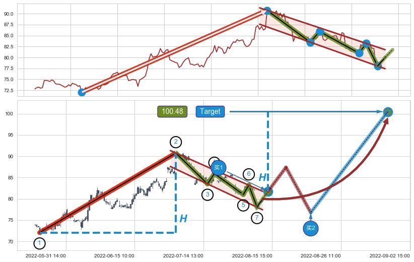 ➣ 最小中继整理涨幅→𝐇: 18.71 (𝐇旗杆的长度:旗杆起点→顶点)