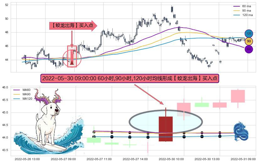 ⚀ 2022-05-30 09:00:00小时显现 60小时-90小时-120小时均线 【蛟龙出海】买入点 看多信号,后市看涨,买入