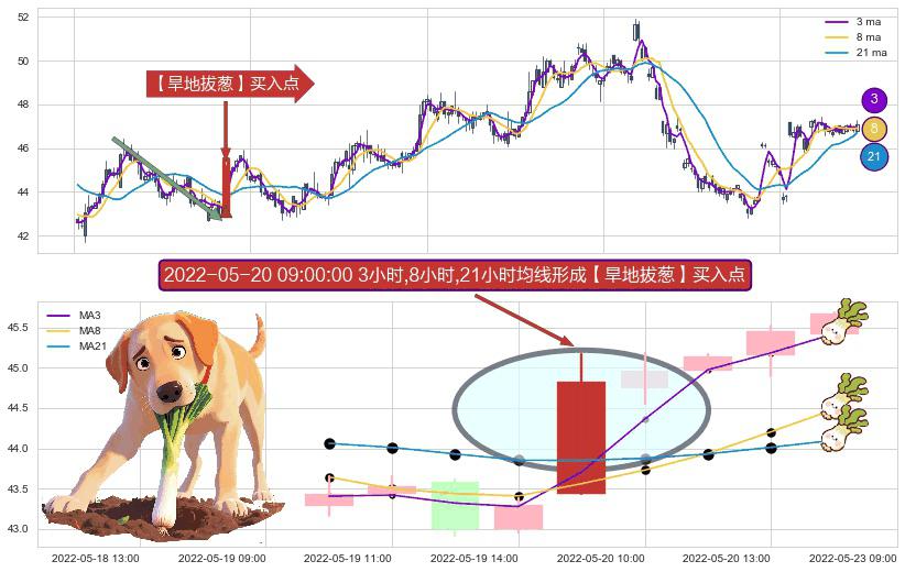 ⚀ 2022-05-20 09:00:00小时显现 3小时-8小时-21小时均线 【旱地拔葱】买入点 看多信号,后市看涨,买入