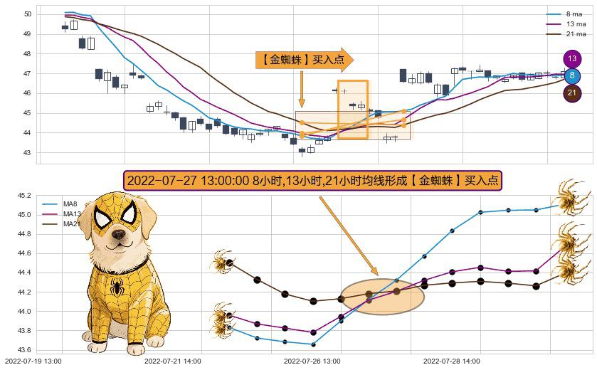 ⚀ 2022-07-27 13:00:00小时显现 8小时-13小时-21小时均线 【金蜘蛛】买入点 看多信号,后市看涨,买入