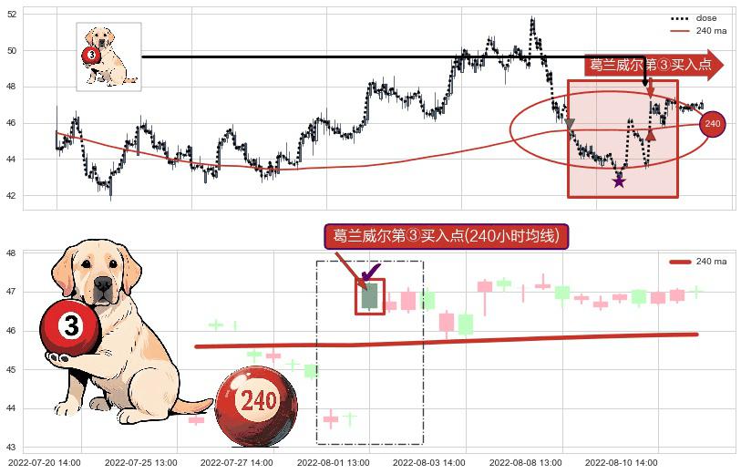 ⚀ 2022-08-01 13:00:00-小时显现 葛兰威尔均线 240小时均线 第③买入点 上升趋势的中继信号,后市看涨,买进信号