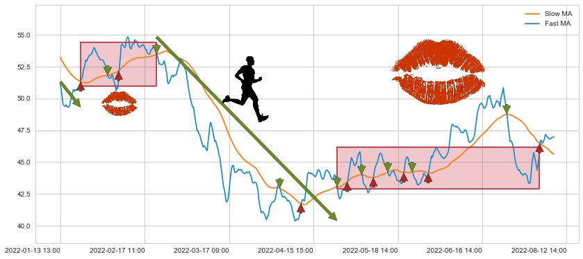 01-20 11:00至02-22 09:00 慢线与快线多次接触,存在上下穿越,有缠绕