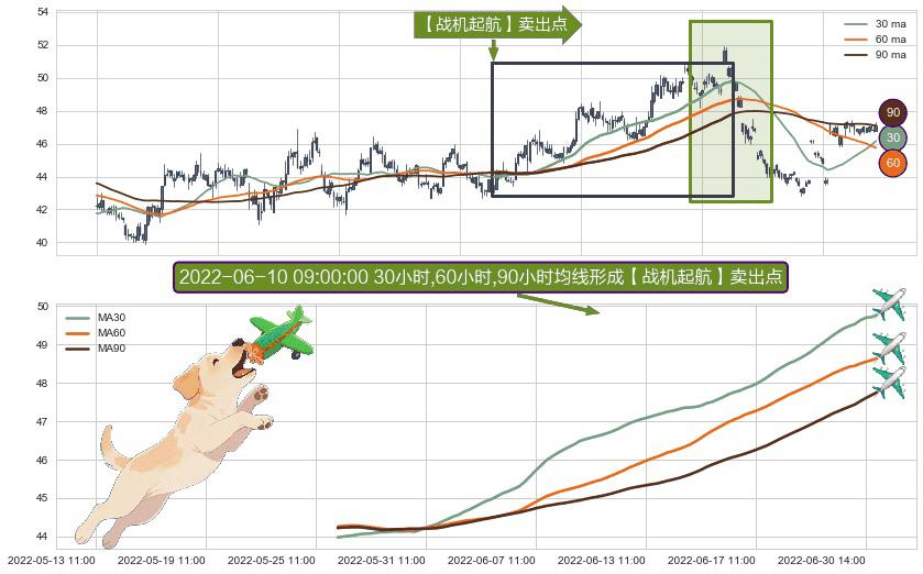 ⚀ 2022-05-26 10:00:00小时-2022-07-01 14:00:00小时显现 30小时-60小时-90小时均线 【战机起航】卖出点 看空信号,后市看跌,卖出