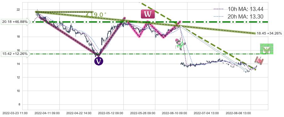 ♘ 阻力价格位20.18,可信任强度75.11%,距离最后交易2022-08-12 14:00形成的收盘价格13.74相差 +46.88%