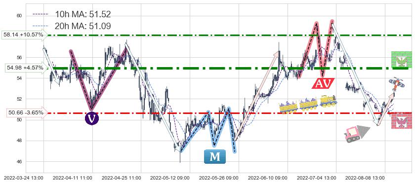 ♘ 阻力价格位54.98,可信任强度87.13%,距离最后交易2022-08-12 14:00形成的收盘价格52.58相差 +4.57%