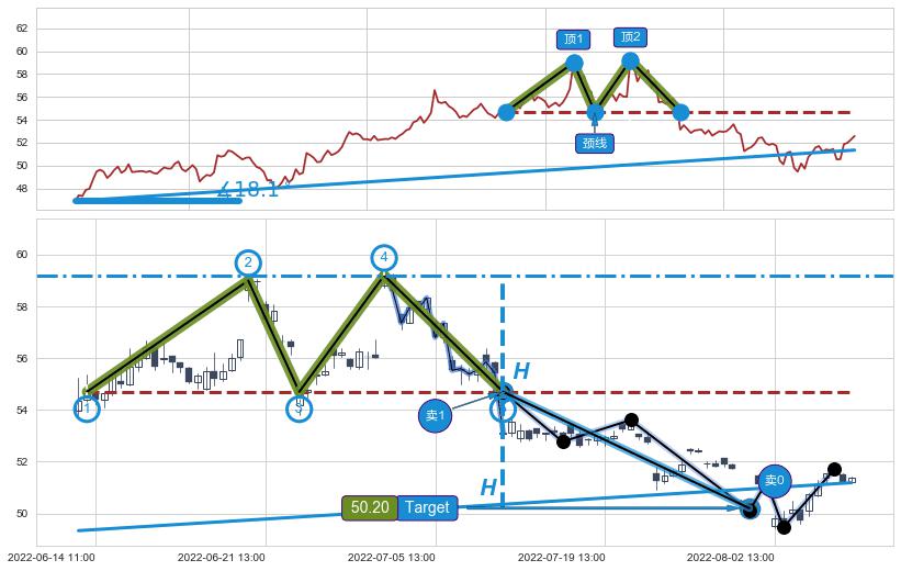 ➣ 07-22:13到达第❷价格目标位置51.25