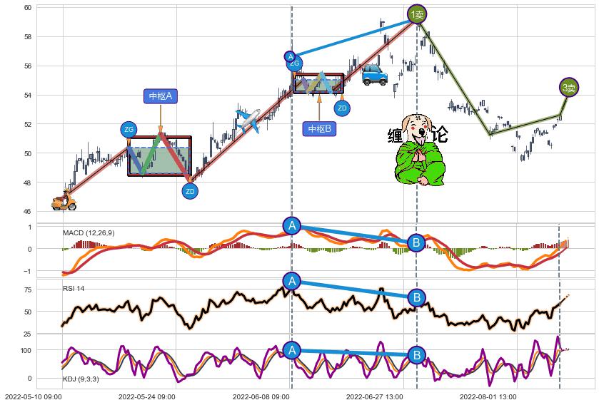 ➣ 【已完成】缠论 起点:05-10:09,完成第1中枢A,完成第2中枢B,终点:06-30:13,缠论共220交易小时