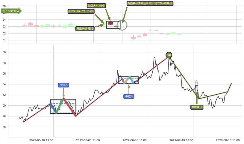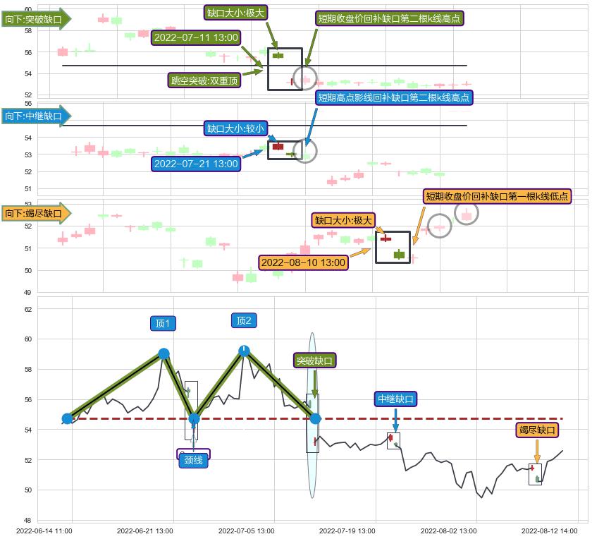 ➢ 2022-08-10 13:00形成:向下跳空【竭尽】缺口
