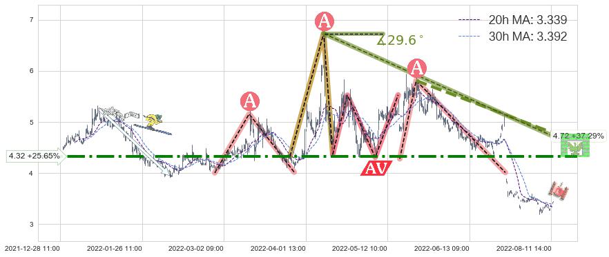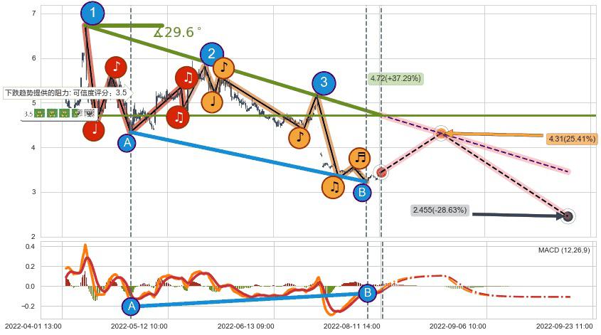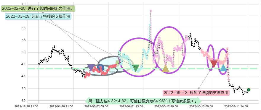 ♘ 阻力价格位4.32,可信任强度84.95%,距离最后交易2022-08-12 14:00形成的收盘价格3.440相差 +25.65%
