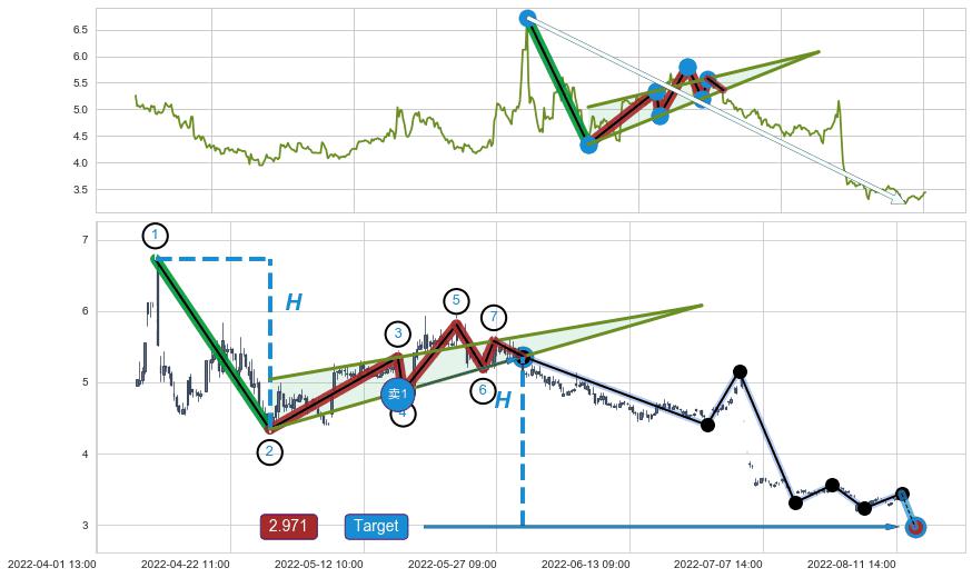 ➣ 【已确认突破】最后价格:3.440与最小【整理】第一目标价格→(08-15:13: 2.971 )相较: 下跌空间【较小】