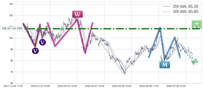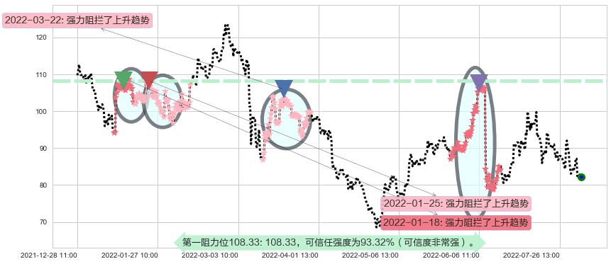 ♘ 阻力价格位108.33,可信任强度93.32%,距离最后交易2022-08-12 14:00形成的收盘价格82.20相差 +31.79%