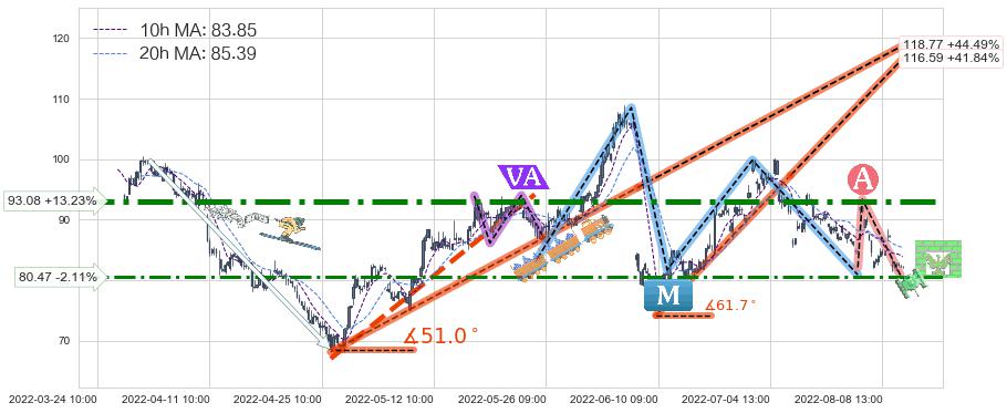 ♘ 阻力价格位93.08,可信任强度90.85%,距离最后交易2022-08-12 14:00形成的收盘价格82.20相差 +13.23%