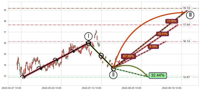 ➣ 【已确认突破】最后价格:14.34与最小【反转】第一目标价格→(08-17:14: 12.27 )相较: 下跌空间【较大】