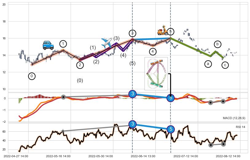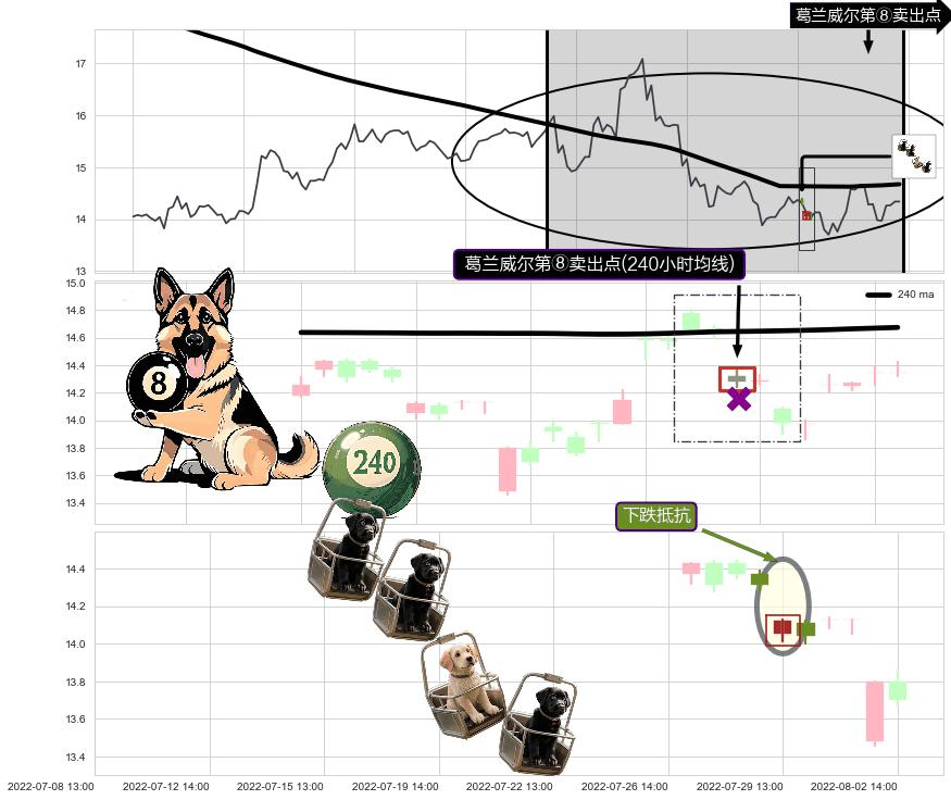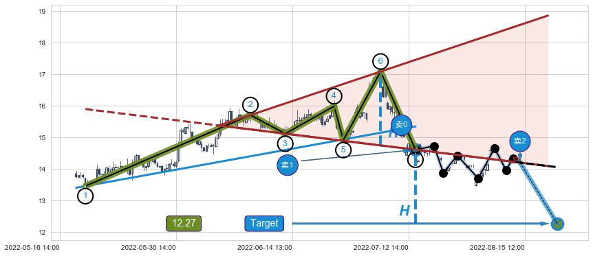 ➢ 最后的上涨趋势2022-04-28 13:00至2022-07-13 14:00:存在破位迹象,后续小调整或者反转下跌