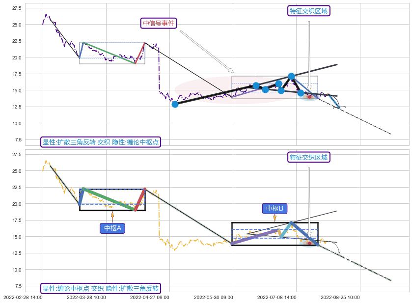 从2022-06-22 14:00至2022-08-02 14:00,共包含59个小时,阶段股价下跌-7.59%,阶段股价变动位移路程比: 1 : 9