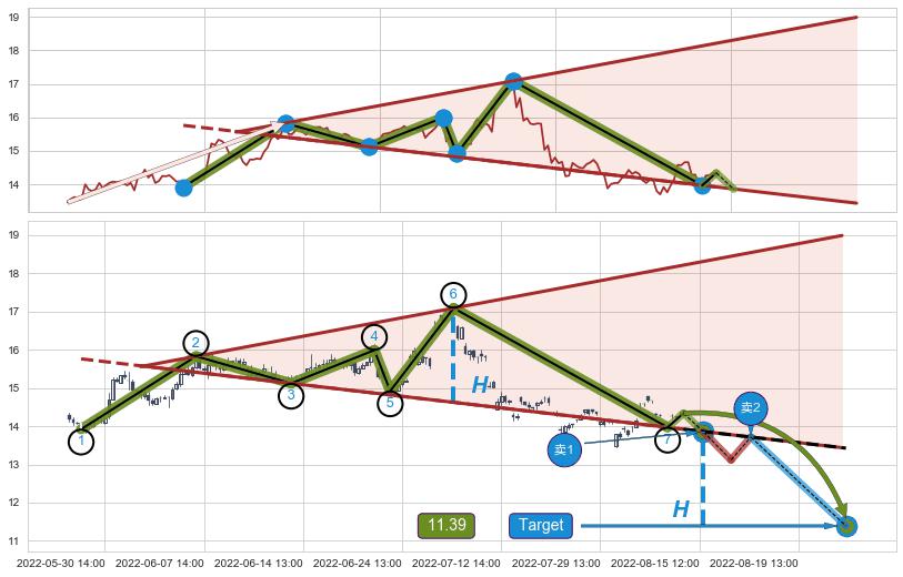 ➣ 【仅预测突破】最后价格:14.34与预测突破价格:13.86→【空间中等】后续最小【反转】第一目标价格→(08-23:13: 11.39 )