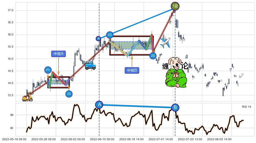 ➢ 缠论价格❶卖比A点高 ⤴,【RSI】指标B点比A点低 ⤵️