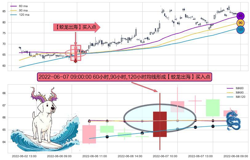 ⚀ 2022-06-07 09:00:00小时显现 60小时-90小时-120小时均线 【蛟龙出海】买入点 看多信号,后市看涨,买入