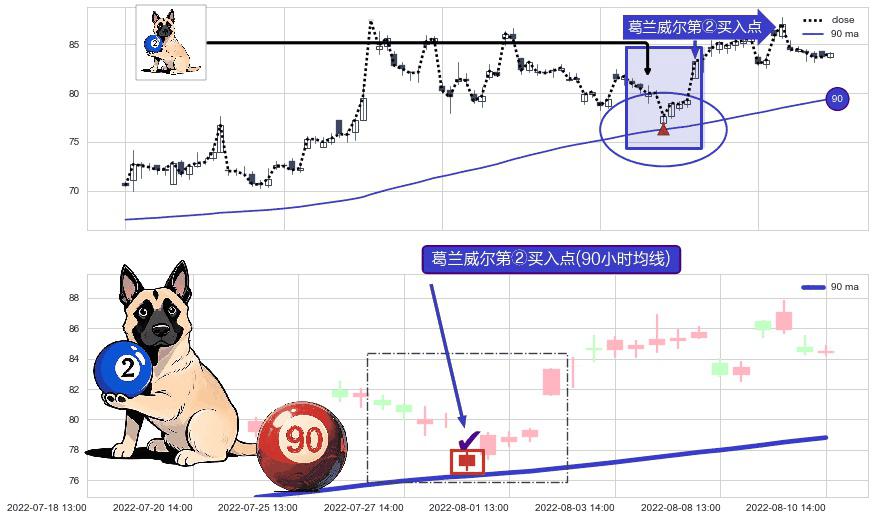⚀ 2022-07-29 13:00:00-小时显现 葛兰威尔均线 90小时均线 第②买入点 上升趋势的中继信号,后市看涨,买进信号
