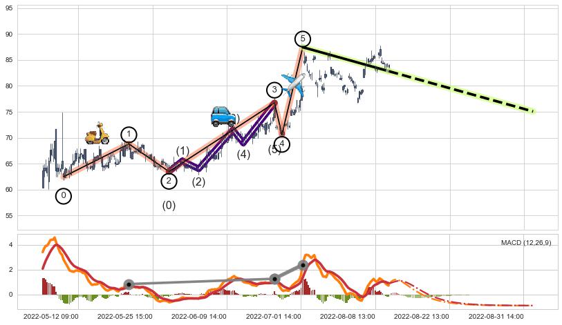 ➣ 第一, 三, 五浪上涨动能逐渐【增强变大】,趋势不断加固