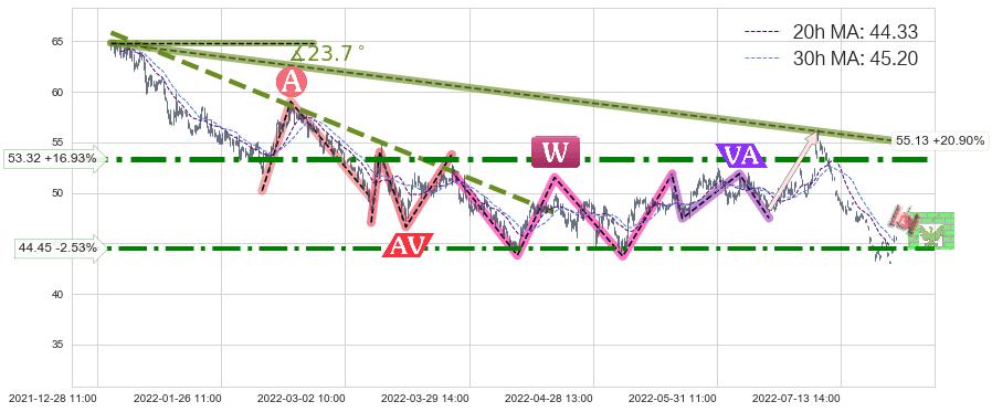 ♘ 阻力价格位44.45,可信任强度75.43%,距离最后交易2022-08-12 14:00形成的收盘价格45.60相差 -2.53%