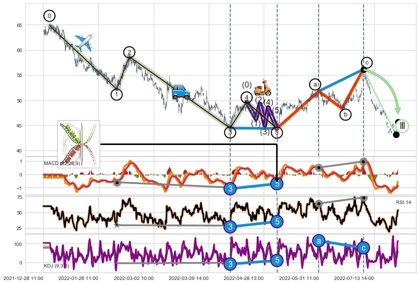 ➣ 1,3,5驱动浪MACD, RSI, KDJ走势都出现【常规背离】反转信号增强