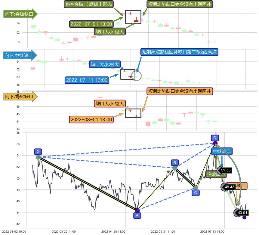 ➢ 2022-08-01 13:00形成:向下跳空【竭尽】缺口