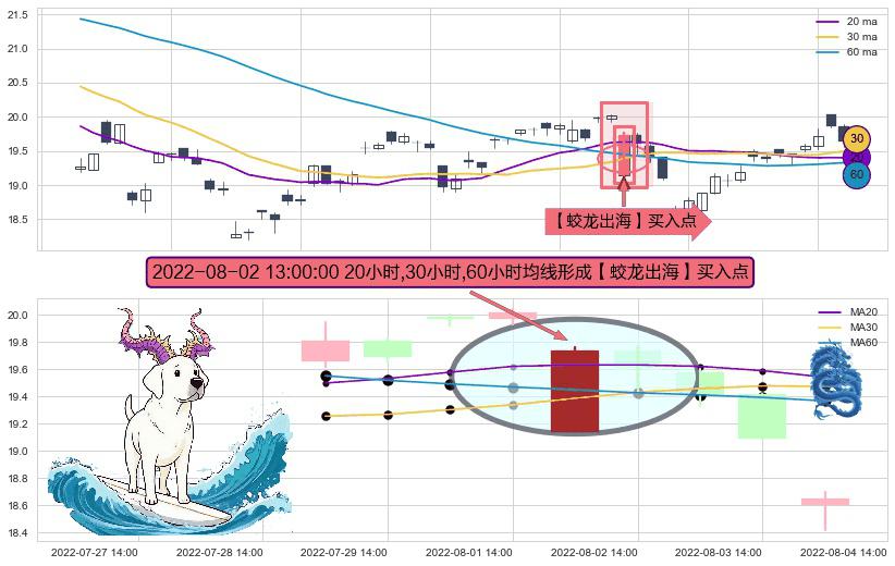 ⚀ 2022-08-02 13:00:00小时显现 20小时-30小时-60小时均线 【蛟龙出海】买入点 看多信号,后市看涨,买入